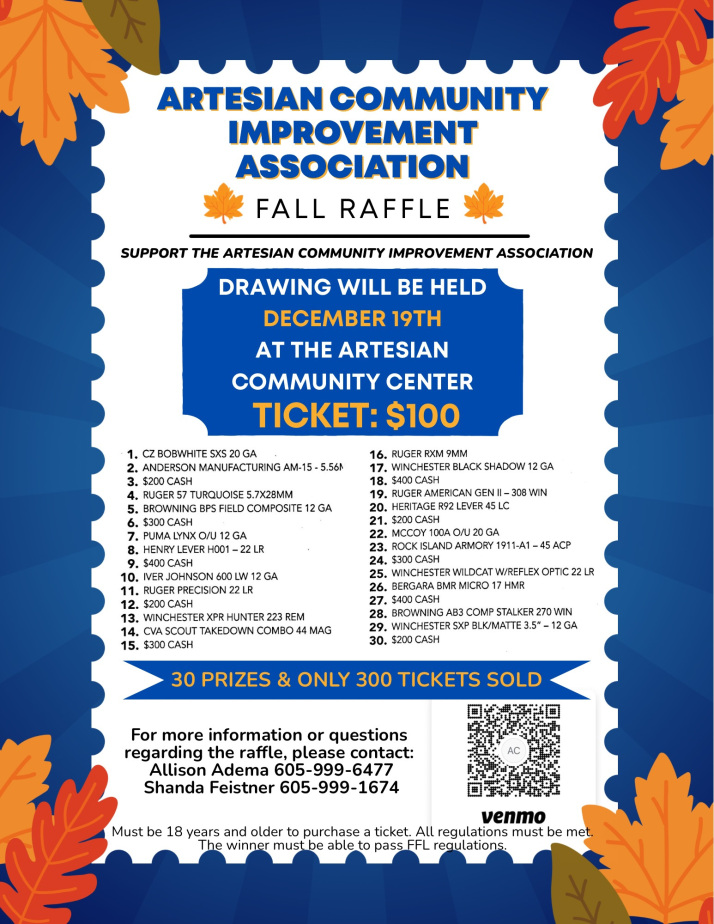 Click image for more information on Artesian CIA 2025 Fall Raffle!
